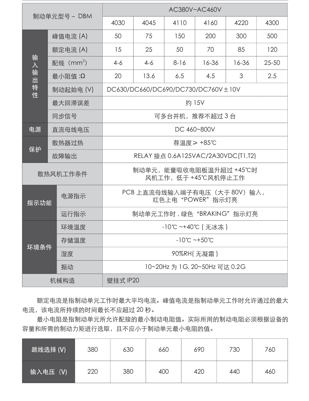 DBMS系列制动单元的作用是将电机在减速的过程中产生的再生能量,以热能的形式消耗在制动电阻上,以产生足够的制动转矩,从而改善变频器的制动性能及缩短变频器的制动时间。